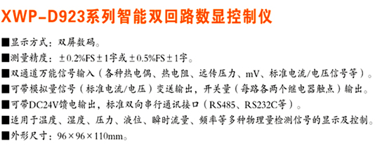XWP-D923系列智能雙回路數(shù)顯控制儀