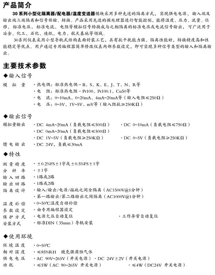 XWP30系列小型溫度變送器/隔離器/配電器